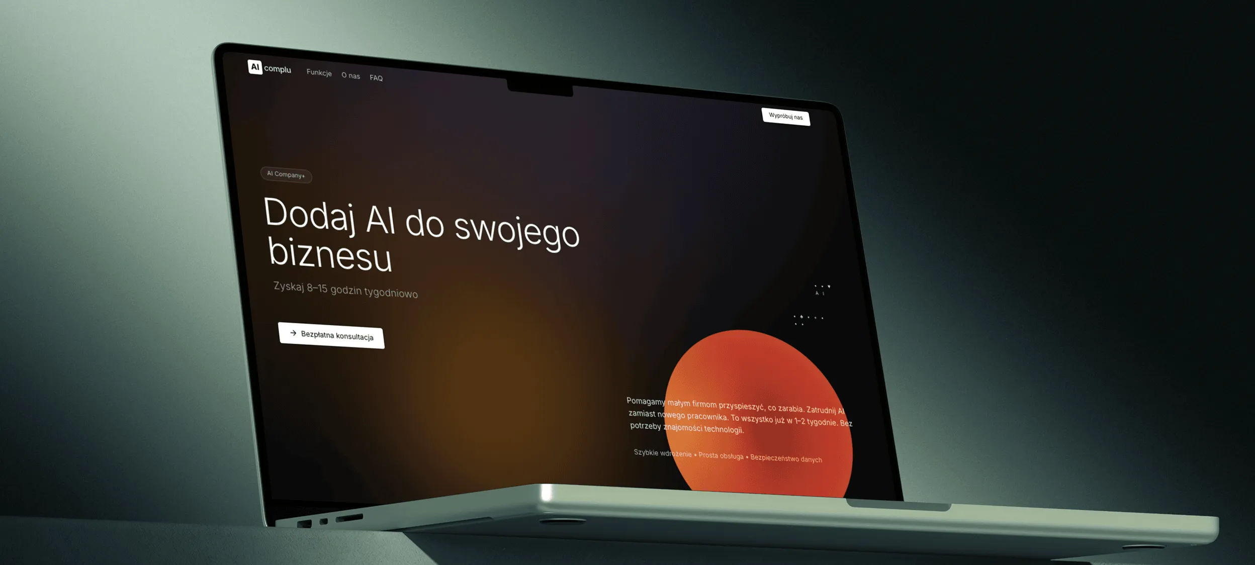 Zaprojektowaliśmy i wdrożyliśmy nową stronę dla AIcomplu — zespołu, który pomaga małym firmom wdrażać AI. Naszym celem było maksymalne uproszczenie ścieżki kontaktu i jasne przedstawienie wartości (oszczędność 8–15 h tygodniowo).